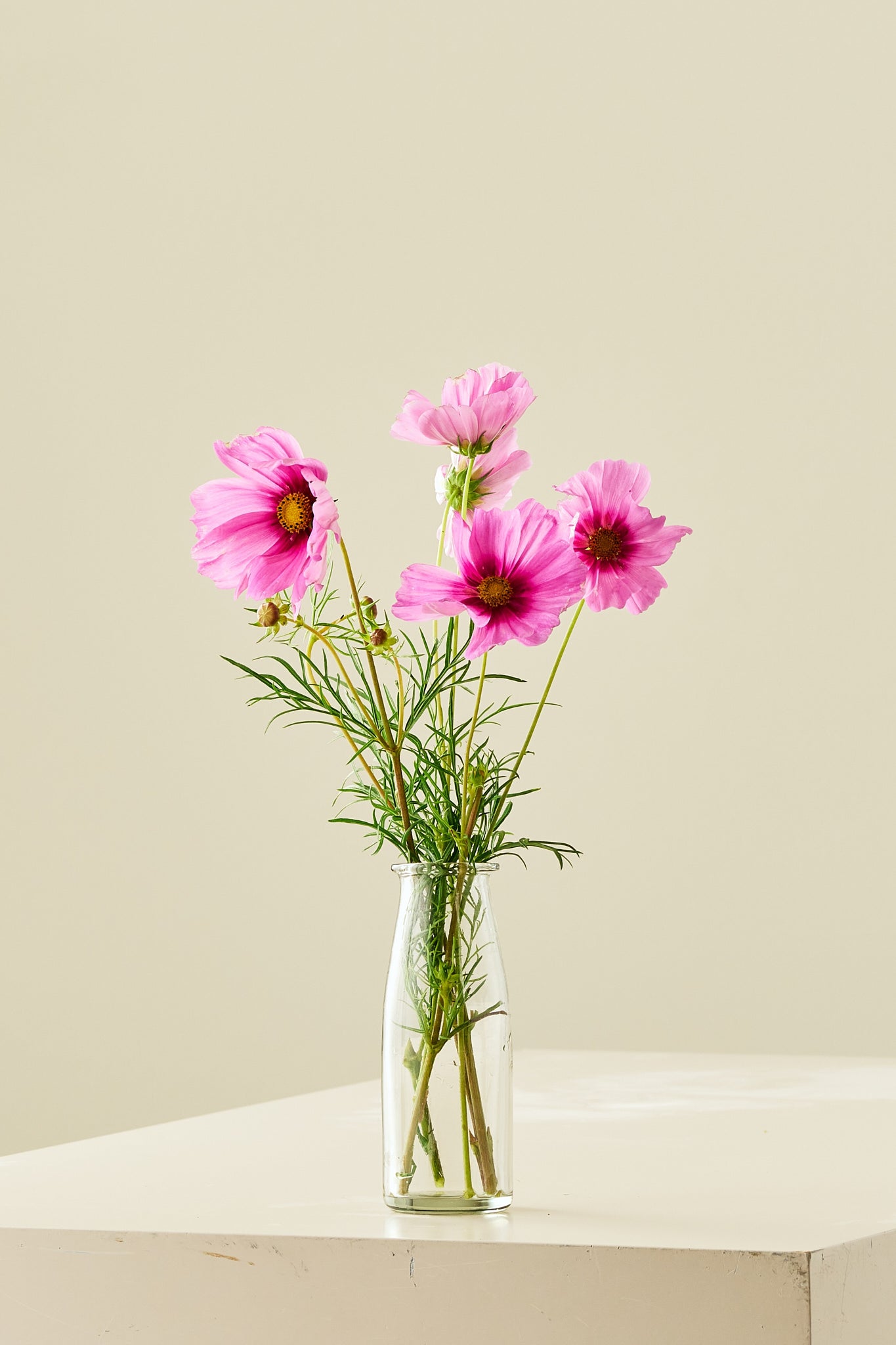 Når planterne er ca. 8–10 cm høje, kan du knibe topskuddet af. Det fremmer sideskud, som giver en buskere vækst og flere blomster.