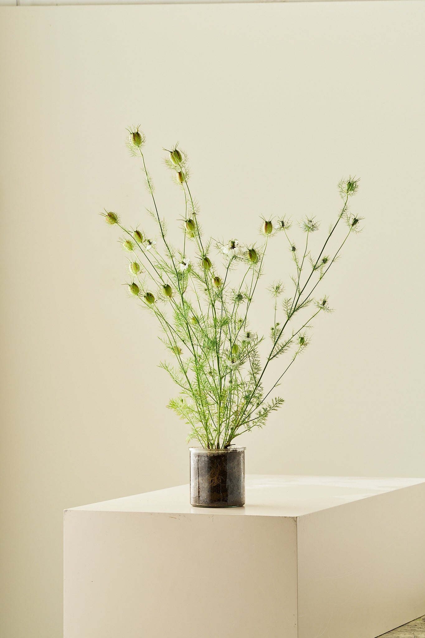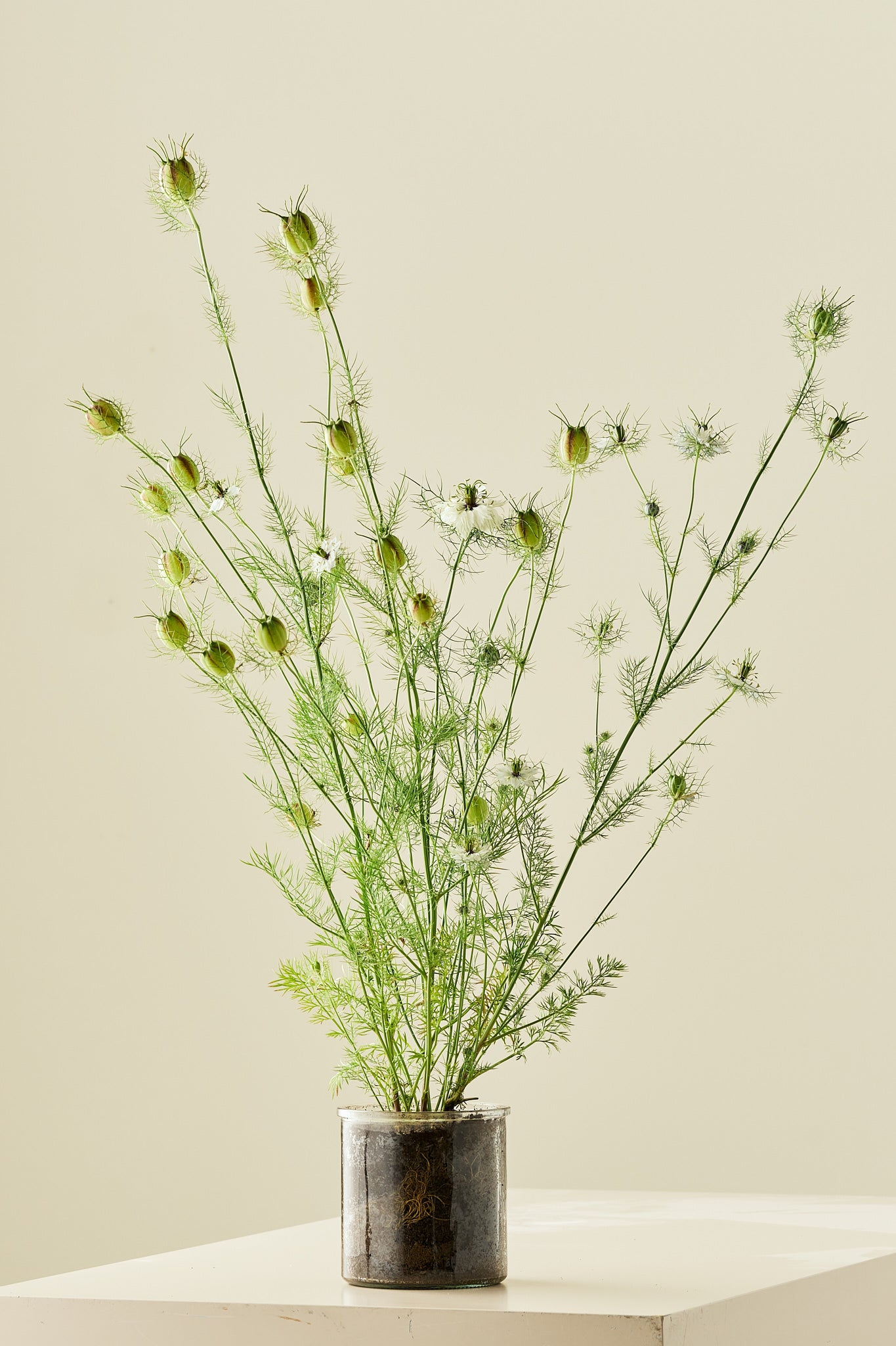 Jomfru i det grønne ’Miss Jekyll White’ er en smuk og klassisk sort med rene, hvide blomster, der står elegant mod det fine, fjerlette løv. Blomsten tilfører lys og lethed, og er samtidig en af de bedste sorter til buketter og dekorationer, både på grund af blomsterne og de karakteristiske, oppustede frøkapsler. Sorten er nem at dyrke og selvsår sig ofte, så du kan få glæde af den år efter år.